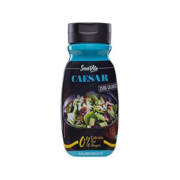 Salsa Cesar de Servivita es una rica salsa sin calorías ideal para todo tipo de ensaladas, a las que darás un sabor y aroma intenso, pero sin sumar ni una sola caloría a tu línea.