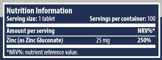 Zinc de Scitec Nutrition es un suplemento mineral que te proporciona 25 mg de zinc (como gluconato de zinc) por tableta.