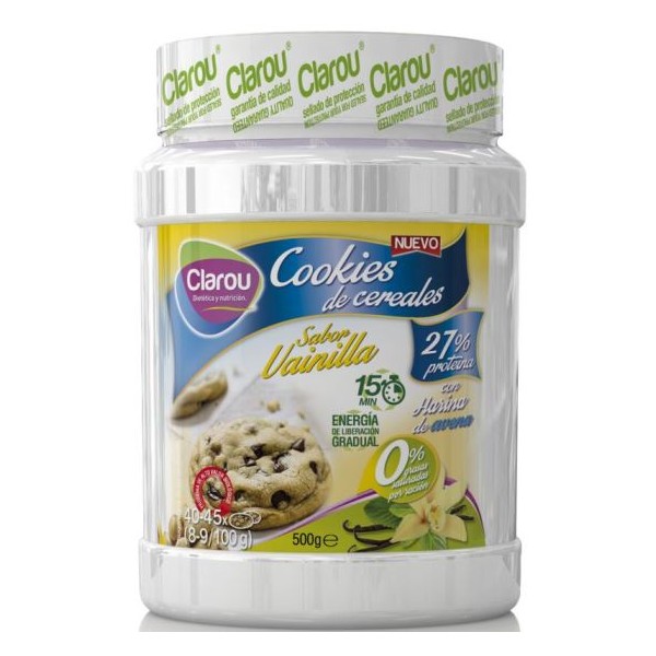 Cookies de cereales de Clarou es un preparado en polvo para elaborar de forma rápida y fácilmente unos deliciosas galletas a base de copos, salvado y harina de avena, aislado de proteina de soja, concentrado de proteína de leche y germen de trigo.