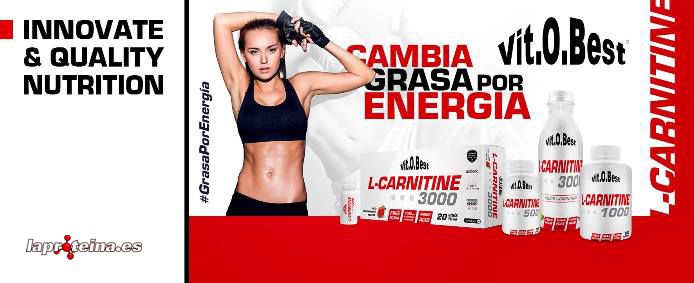 La carnitina es un aminoácido no esencial que es sintetizado a partir de lisina, que acelera la degradación de las grasas, por lo que es ideal para reducir el porcentaje de grasa corporal. La mayoría de la carnitina se encuentra en las células cardiacas y musculares, de ahí su importancia en el ejercicio, ya que degrada los depósitos de grasa para ser usados como energía en el movimiento. La carnitina también incrementa los niveles energéticos, ayuda reducir el tejido adiposo corporal, favorece la captación de oxígeno y la obtención de energía.