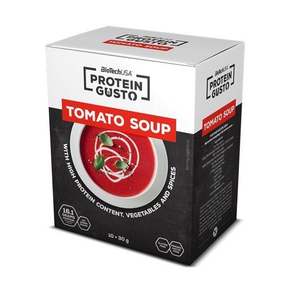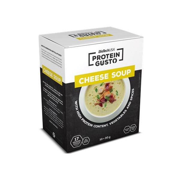 Soap de BioTech USA dentro de su línea de comidas funcionales Protein Gusto es un producto en polvo para preparar de una forma rápida y sencilla unas deliciosas y nutritivas sopas altas en proteína en tres versiones diferentes, con sabor queso, con sabor a tomate y con brócoli.