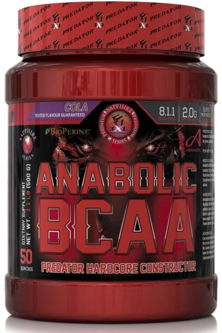 Anabolic BCAA de 3XL® Predator dentro de su línea Shapire Series es un suplemento en polvo que contiene aminoácidos ramificados de Ajinomoto® con ratio 8:1:1 combinados con arginina alfa cetoglutarato, extracto Muira Puama y BioPerine®.