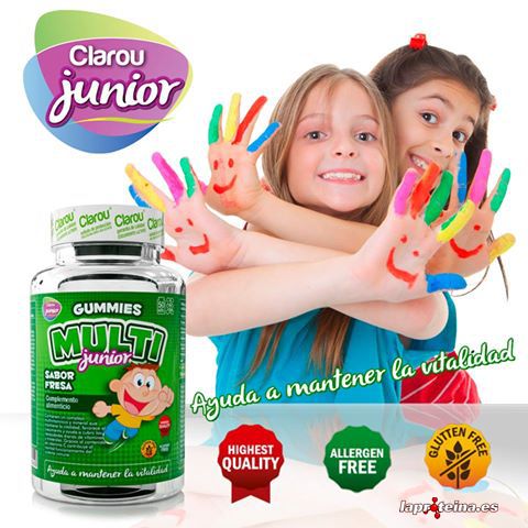 Multi Junior de Clarou dentro de su línea especial para niños Clarou Junior es un suplemento dietético en forma de sabrosas gominolas con sabor a fresa que contienen un complejo multivitamínico y mineral que ayuda a mantener la vitalidad, favorece el crecimiento y ayuda a cubrir las necesidades diarias de vitaminas y minerales.
