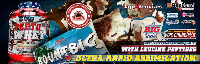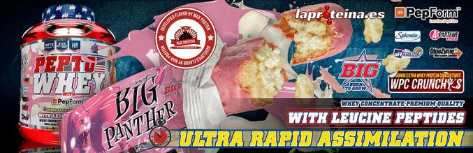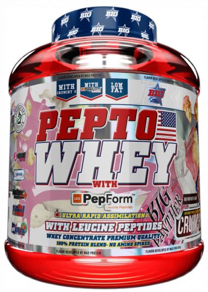 Pepto Whey de la línea Big de Universal McGregror es un suplemento proteico completamente novedoso que contiene concentrado de proteína de suero de la más alta calidad enriquecida con los nuevos péptidos de leucina PepForm™, que te ofrece una experiencia sensorial única gracias a sus deliciosos crujientes de proteína de suero denominados Crunchy´s, y a los espectaculares sabores en los que se encuentra disponible.