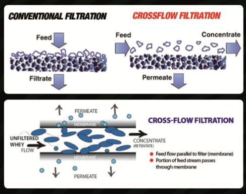En la fabricación de CFM® Whey Protein procedemos a una microfiltración de flujo cruzado, un delicado proceso que utiliza filtros para separar la proteína de las grasas, el colesterol y la lactosa en función de su peso y tamaño molecular.