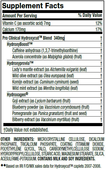 - Contiene 340 mg de la formula patentada Pro Clinical Hydroxycut por servicio de 2 tabletas.