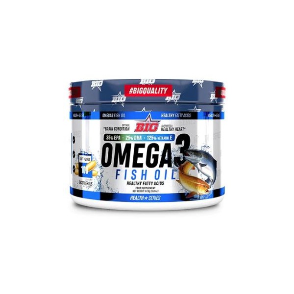 Omega 3 Fish Oil de la línea Big de Universal McGregror contiene 1.000 mg por perla de aceite de pescado (35% EPA 25% DHA) enriquecido con vitamina E natural y una mezcla de antioxidantes patentada conocida como Vitahess E sf Plus.