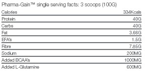 Pharma-Gain™ contiene pequeñas cantidades de grasas saturadas, pero para compensar este hecho inevitable, Pharma-Gain™ incluye el aceite de oliva y de linaza. Tanto el aceite de oliva y las semillas de lino contienen Ácidos Grasos Esenciales (EFA) que son muy saludables en la dieta de cualquier persona interesada en tener una calidad de vida óptima.