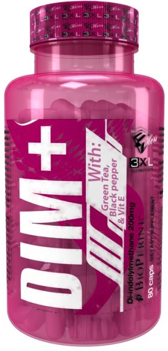 DIM+ de la marca 3XL® Nutrition dentro de su nueva línea especial para chicas activas 3XL® Hers contiene 200 mg de diindolilmetano por dosis de 2 cápsulas, un compuesto que se utiliza para la regulación hormonal de las mujeres.