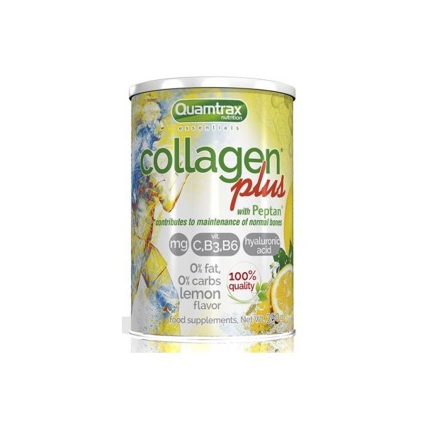 Collagen Plus con Peptan® de Quamtrax Nutrition es un suplemento en polvo que contiene colágeno hidrolizado de origen bovino con materia prima Peptan®, lo que nos asegura una máxima calidad y pureza, que además está enriquecido con ácido hialurónico, magnesio y vitaminas (C, B3 y B6).