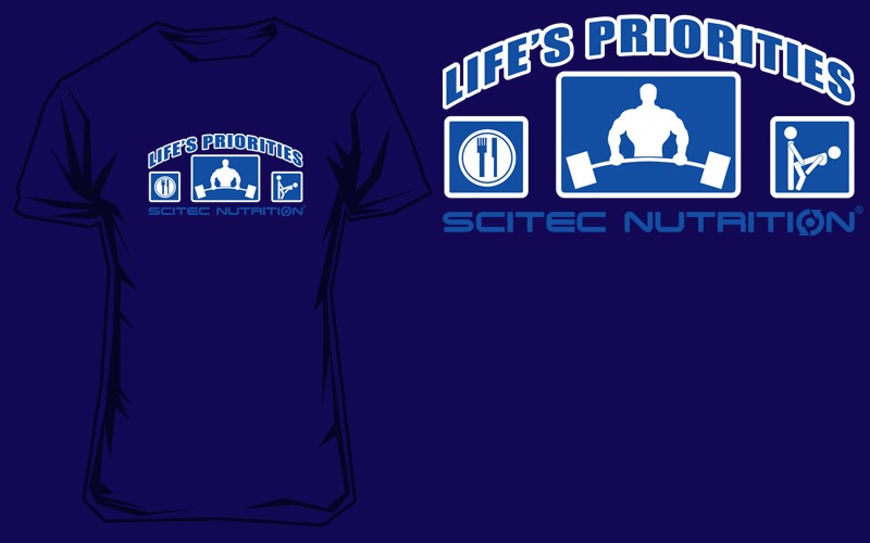 Este nuevo modelo de camiseta 100% algodón de Scitec Nutrition no te dejará indiferente. Si eres un apasionado del entrenamiento de musculación y tienes claras tus prioridades en la vida esta es la camiseta que te gustará llevar. Úsala en el gimnasio o para vestir de un modo "sport" y enseña lo que hay en ti.