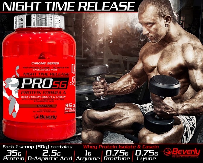 Pro SG Night Time Protein de Beverly Nutrition es una fórmula proteica que contiene una estudiada mezcla de aislado de suero y caseína, diseñada específicamente para ser digerida de forma lenta y progresiva durante las 6 u 8 horas que dura el descanso nocturno con el fin de evitar el catabolismo muscular.
