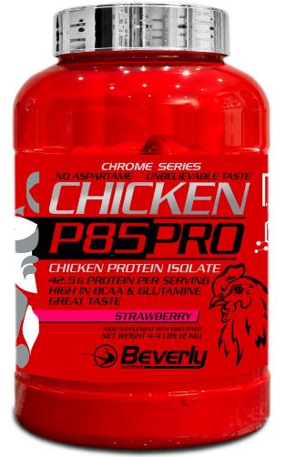 Chicken P85 Pro de Beverly Nutrition es un suplemento proteico en polvo que contiene aislado de proteína de pollo, una proteína de origen animal única, que tiene una gran pureza, prácticamente sin grasa, libre de lactosa y que se convierte en una excelente elección para todos aquellos deportistas que buscan una alternativa a las proteínas de suero.