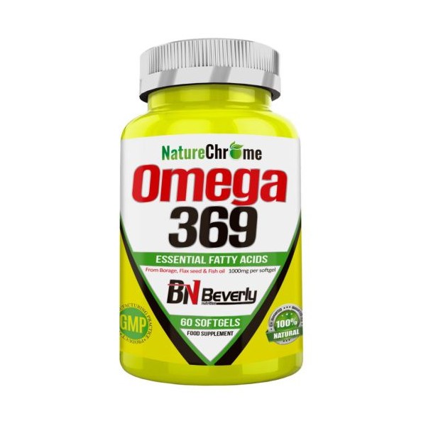 Omega 3 6 9 de Beverly Nutrition contiene 1.000 mg de una mezcla equilibrada de ácidos grasos omega 3, omega 6 y omega 9 por dosis procedentes de aceite de pescado, de aceite de onagra y de aceite de semillas de lino por perla, que además está enriquecido con vitamina E.