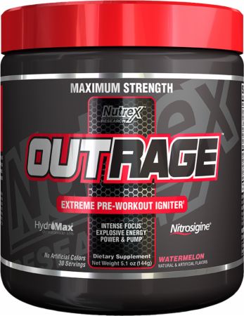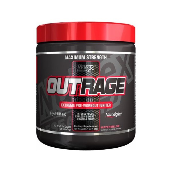 OutRage™ de Nutrex Research es un nuevo y exclusivo pre-entreno que contiene una fórmula ultraconcentrada con los compuestos más vanguardistas y efectivos del momento como Hydromax® y Nitrosigine® para amplificar el bombeo muscular, aumentar la fuerza y conseguir un mayor rendimiento físico durante la práctica deportiva.