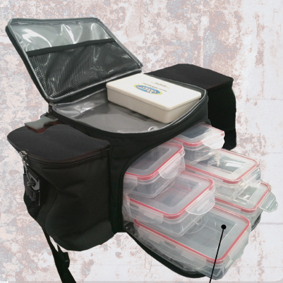 La nueva mochila CoolBag cuenta con un compartimento frontal con cavidad para 6 tuppers o contenedores de plástico para llevar comidas preparadas; divisiones laterales para colocar las bebidas, shakers o vasos, cubiertos y frutas; en la parte superior lleva un organizador con tapa y divisiones (a modo de pastillero) para que los suplementos en cápsulas o tabletas estén siempre bien clasificados en su sitio; por último también incluimos dos bolsas con un gel enfriador que mantendrán todo su contenido fresco durante todo el día.