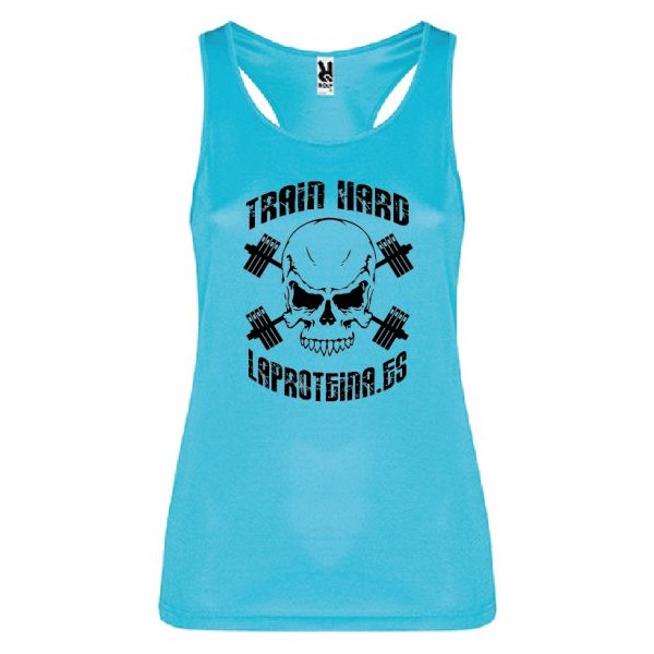Camiseta de tirantes elaborada con tejido transpirable de fácil lavado y secado. Train Hard.