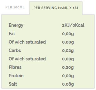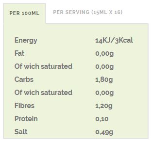 El Sirope de Canela de 2BSlim no contiene gluten, no contiene lactosa y solo aporta un 0,07 gramos de sal. Además posee altas cantidades de fibra, por lo que es perfecto para una dieta de adelgazamiento.