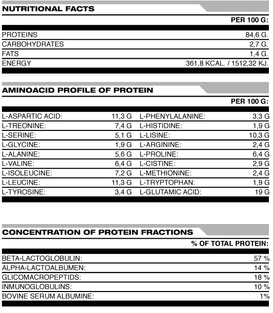 Isolate Gold CFM tiene un contenido de proteína del 85%, y unos valores de grasas y de carbohidratos muy bajos, lo que la convierte en una de las fórmulas de proteína más potentes en el mercado.