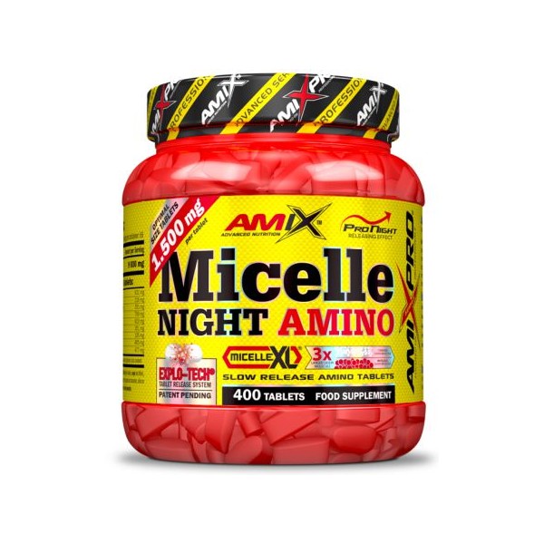 Micelle Night Amino de Amix™ Advanced Nutrition es un revolucionario y novedoso complemento alimenticio en tabletas que contiene Micelle XL™, unos péptidos reestructurados de caseina micelar especialmente diseñados para ser utilizados antes de ir a dormir o para tomar entre horas debido a su lenta digestión.