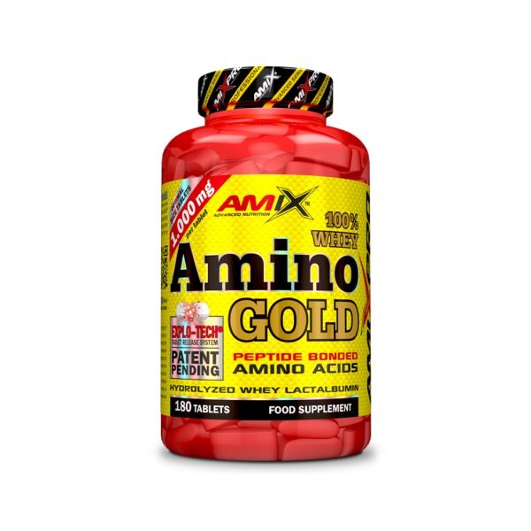 100% Whey Amino Gold de Amix™ Advanced Nutrition es un complemento alimenticio en tabletas que proporciona 6.000 mg por dosis de 6 tabletas de aminoácidos procedentes de proteína de suero de leche pura hidrolizada de la más alta calidad.