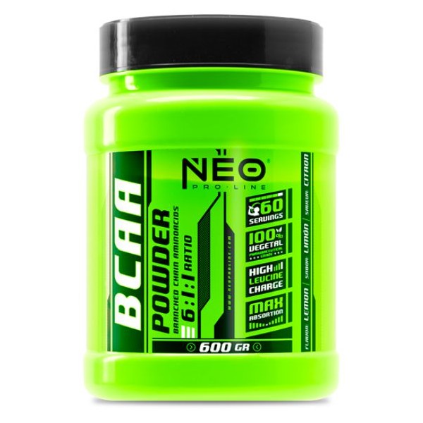 BCAA 6:1:1 Powder de NEO Pro Line es un suplemento en polvo con sabor a limón o fresa que contiene una mezcla de aminoácidos de cadena ramificados (leucina, isoleucina y valina) en forma libre, de grado farmacéutico, extraídos de vegetales por fermentación, con una relación 6:1:1 y enriquecidos con taurina.