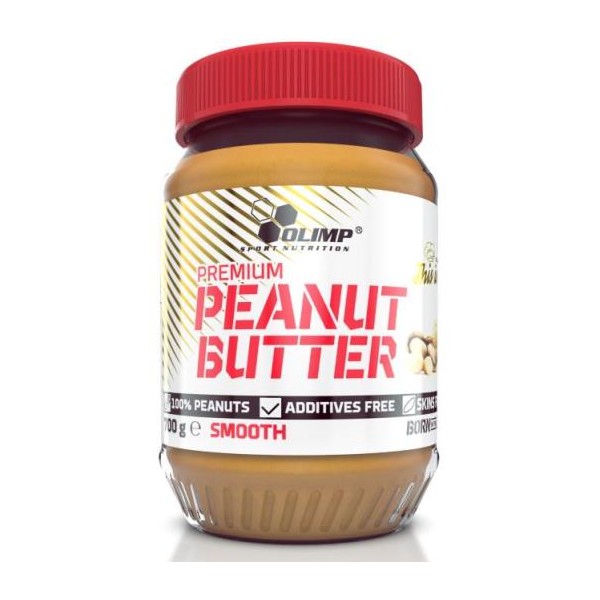 Premium Peanut Butter de Olimp Sport Nutrition es una deliciosa mantequilla de cacahuete con un sabor suave elaborada con el 100% de cacahuetes frescos tostados completamente natural ya que no contiene colorantes, saborizantes o conservantes artificiales.