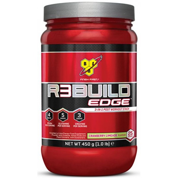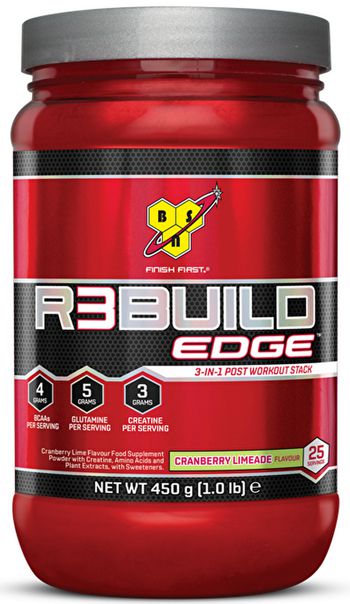 R3Build Edge™ de BSN Finish First es el nuevo post-entreno concentrado 3 en 1 diseñado para ayudarte a poner en marcha tu recuperación después del entrenamiento, gracias a la combinación de tres ingredientes probados como la creatina, los BCAAs y la glutamina.