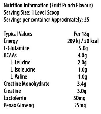 4 g BCAAs - 5 g Glutamine - 3 g Creatine