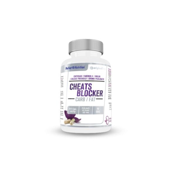 Cheats Carb & Fat Blocker de Perfect Nutrition es un suplemento en cápsulas que contiene una combinación de efectivos bloqueadores de grasas y carbohidratos como el chitosan y fabenol max (extracto de vaina de judia), que además se encuentra potenciado la fibra soluble prebiótica inulina, el extracto de coleus forskoli y el picolinato de cromo.