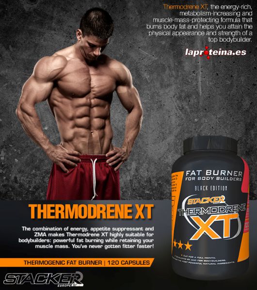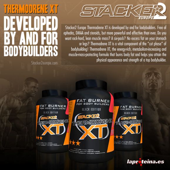 Tras años de investigación, Stacker2 lanza ahora un producto desarrollado por y para culturistas: Thermodrene XT. No contiene ni efedra, ni DMAA ni esteroides, pero es más potente y eficaz que nunca. Sin duda, es el mejor y más efectivo quemagrasas disponible en estos momentos.