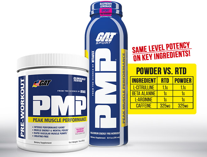 PMPRTD de GAT es el nuevo pre-entrenamiento de los creadores de NitraFlex™, uno de los mejores pre-entrenos de todos los tiempos. Descubre la fórmula que está arrasando en USA, ahora en cómodas botellas individuales.