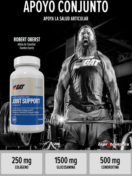 Levantar cientos de kilos repetidamente supone un enorme desgaste para las articulaciones de un atleta. Conscientes de ello, el equipo de GAT Spòrt ha creado una fórmula premium con glucosamina, condroitina y péptidos de colágeno para ayudar a la mejora del funcionamiento de las articulaciones.