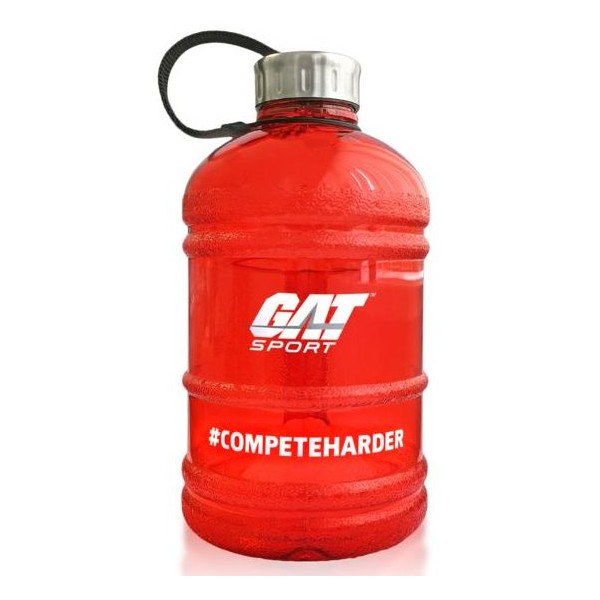El bidón es de color rojo transparente, un color atractivo y energizante, con el logotipo de la reconocida marca GAT Sport. Cuenta con un asa incorporado, muy conveniente y funcional, mientras que su resistente plástico (libre de BPA), asegura que este robusto bidón haga frente a tu día día. La tapa de acero es inoxidable y a prueba de fugas.