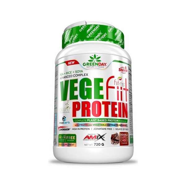 GreenDay® VegeFiit Protein de Amix es un suplemento en polvo que contiene una mezcla de proteínas de origen vegetal compuesta por aislado de proteína de guisante Pisane®, proteína de arroz y proteína de soja; enriquecida con ModCarb™, una mezcla de 5 carbohidratos de granos saludables y sin gluten; AminoGen®, una combinación de enzimas de origen vegetal; y Fiit-ns®, una combinación patentada de extractos naturales con propiedades antioxidantes.