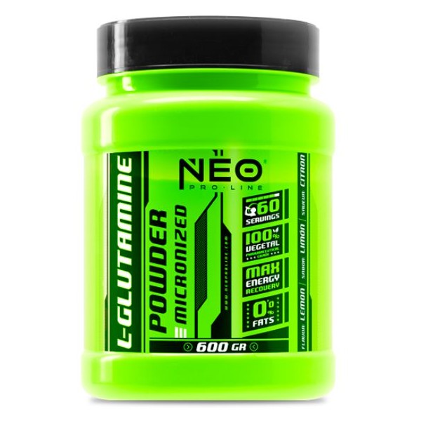 L-Glutamine Powder de NEO Pro Line es un suplemento en polvo que proporciona L-glutamina procedente de vegetales por fermentación de primera calidad, un aminoácido que sirve para recuperación y sistema inmunitario, puede usarse después de entrenar o bien por la noche antes de dormir.