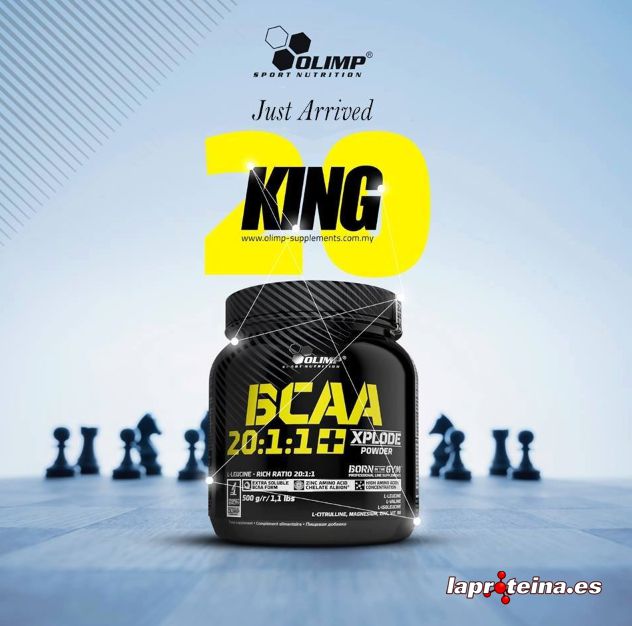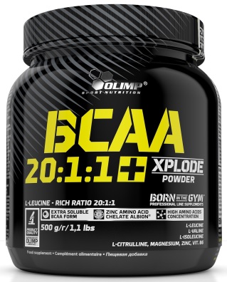 BCAA 20:1:1+ Xplode Powder de Olimp Sport Nutrition es un suplemento en polvo que contiene aminoácidos ramificados con una relación 20:1:1 entre L-leucina, L-isioleucina y L-valina y enriquecidos con una alta dosis de L-citrulina e importantes minerales y vitaminas como el magnesio, el sodio, el zinc y la vitamina B6.