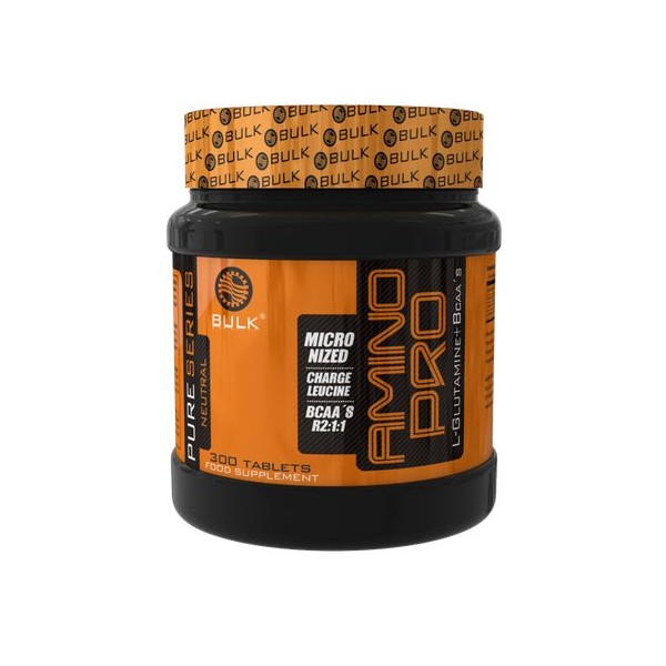 Amino Pro de la nueva marca Bulk® Nutrition es un suplemento en tabletas que proporciona 1 gramo de una mezcla de glutamina y aminoácidos de cadena ramificada con ratio 2:1:1 (leucina:valina:isoleucina) para garantizar una mejor recuperación del músculo.