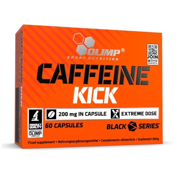Caffeine Kick de Olimp Sport Nutrition es un suplemento en cápsulas que proporciona 300 mg de pura cafeína anhidra por cápsula, lo que constituye una de las dosis más potentes del mercado.