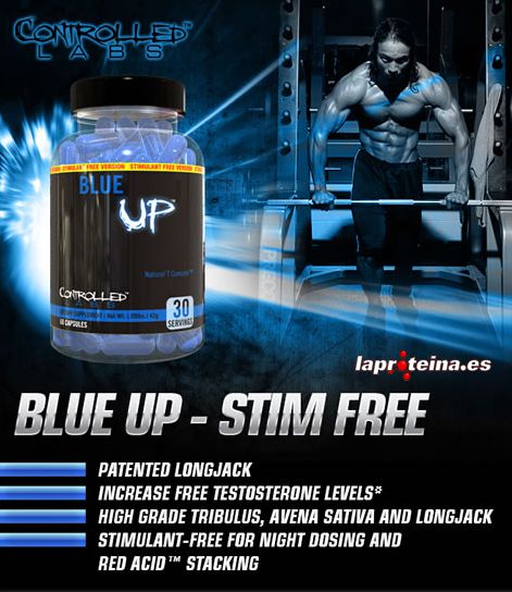 Blue Up™ Stim Free de Controlled™ Labs es un suplemento en cápsulas diseñado para potenciar los niveles naturales de testosterona libre gracias a la combinación de tribulus terrestris, avena sativa y raíz de eurycoma longifolia (LongJack 50:1).