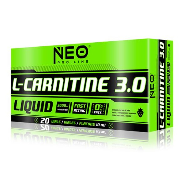 L-Carnitine 3.0 de NEO Pro Line es un suplemento que te proporciona 3.000 mg de L-carnitina tartatro en cómodos viales líquidos monodosis de 10 ml fácilmente transportables a cualquier lugar para que puedas tomar tu dosis de carnitina donde quieras y en el momento que necesites.