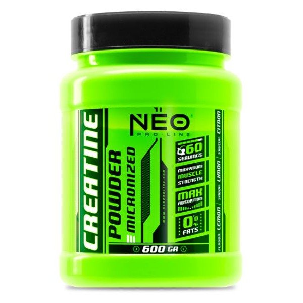 Creatine Powder de NEO Pro Line es un suplemento en polvo que contiene monohidrato de creatina micronizada enriquecida con taurina y con sabor a limón o fresa.