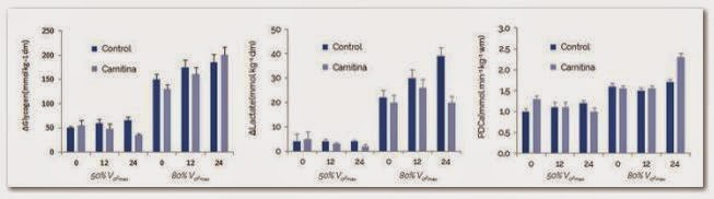 Actualmente se ha observado que la suplementación con 2 g/día de carnitina, junto con la realización de actividad física, aumenta un 21% la carnitina en el cuerpo humano, por tanto, se quema más grasa y se mantiene el glucógeno muscular, evitando la fatiga temprana (disminuyendo la producción de ácido láctico y por tanto de agujetas), aumenta la captación de oxígeno y la producción de energía en el momento cumbre de intensidad durante el entrenamiento y favorece la desintoxicación amoniacal y de urea, típico en deportistas de alto rendimiento.