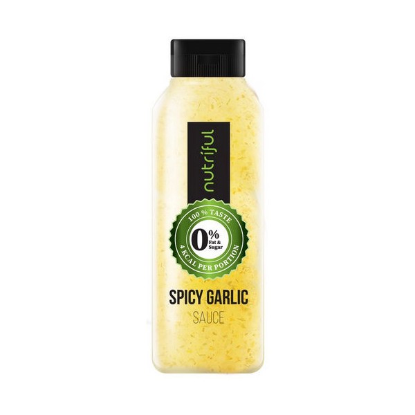La Salsa de Ajo Picante de Nutriful es una salsa con menos de 1 kcal por servicio de 15 ml, perfecta para acompañar tus comidas disfrutando de un delicioso sabor libre de grasas y azúcares.