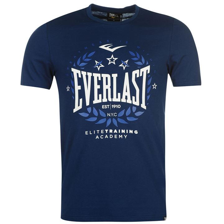 Camiseta de manga corta de hombre Everlast dentro de la colección de "Premium Boxing", es perfecta para los amantes del boxeo. Esta singular camiseta ha sido diseñada con una gran impresión original de Everlast en el pecho "Everlast - Elite Training Academy" inspirada en los boxeadores formados los célebres gimnasios del barrio del Bronx de la ciudad de Nueva York, destacando que la marca está presente en el mundo del boxeo desde 1910 y con el lema "la grandeza está dentro de uno mismo".