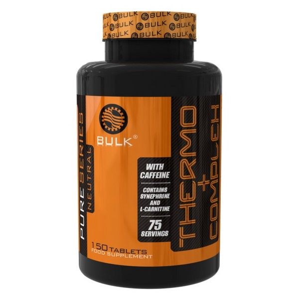 Thermo + Complex de la marca Bulk® Nutrition es un suplemento en tabletas que contiene una fórmula segura y efectiva para favorecer la pérdida de peso que combina hasta 19 ingredientes activos entre los que se incluyen vitaminas, minerales, múltiples extractos herbales, cafeína, carnitina y tirosina para ayudarte a deshacerte de la grasa que te sobra gracias a sus efecto termogénico, lipotrópico y diurético.