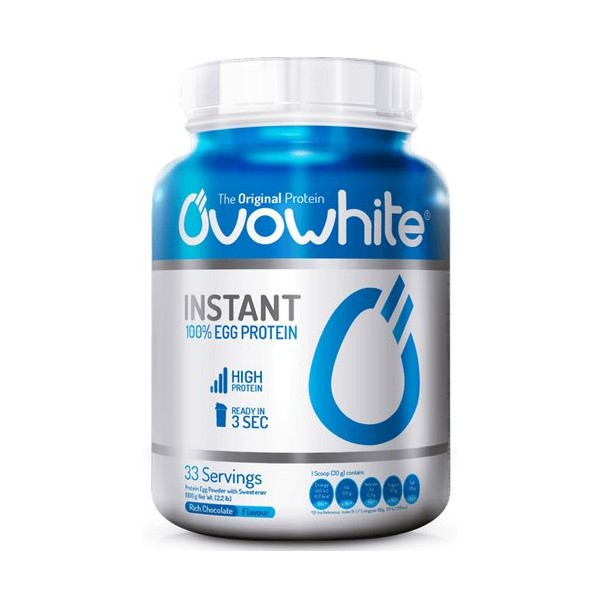 OvoWhite Instant® de la marca OvoWhite es un suplemento proteico en polvo que contiene 100% clara de huevo natural deshidratada e instantánea enriquecida con enzimas digestivas y con unos deliciosos sabores.