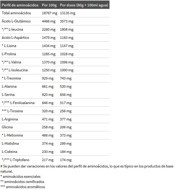 Como suplemento dietético para adultos sanos, mezclar un servicio de 80 gramos (180 unidades de medida = 5,5 scoops o 9 cucharadas rasas) con 100 ml de agua y tomar preferentemente después del entrenamiento.