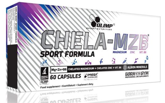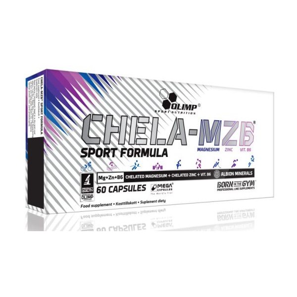 Chela-MZB Sport Formula de Olimp Sport Nutrition es un suplemento en cápsulas que contiene un complejo mineral de magnesio y zinc en sus formas más biodisponibles (minerales quelados de Albion®) en combinación con la vitamina B6.