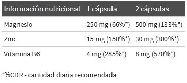 Complejo de magnesio, zinc y vitamina B6. Contiene minerales en forma más biodisponible que los minerales convencionales.